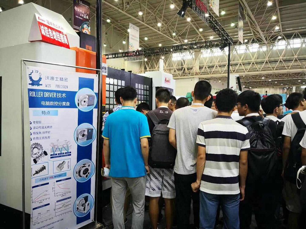 沃迪士攜帶了凸輪滾子結(jié)構(gòu)四軸,五軸轉(zhuǎn)臺(tái),臥加轉(zhuǎn)臺(tái)等產(chǎn)品亮相其中。同時(shí)沃迪士在合同伙伴機(jī)床上展示了單臂五軸T100及搖籃五軸RT350,并做了現(xiàn)場(chǎng)加工演示。吸引了大批專業(yè)觀眾的目光。